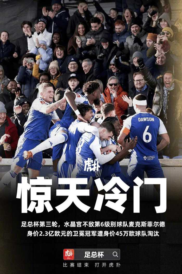 在此前结束的足总杯比赛中爆出惊天大冷门,卫冕冠军水晶宫1-2不敌英格兰第六级别联赛球队麦克斯菲尔德(半职业球队)。